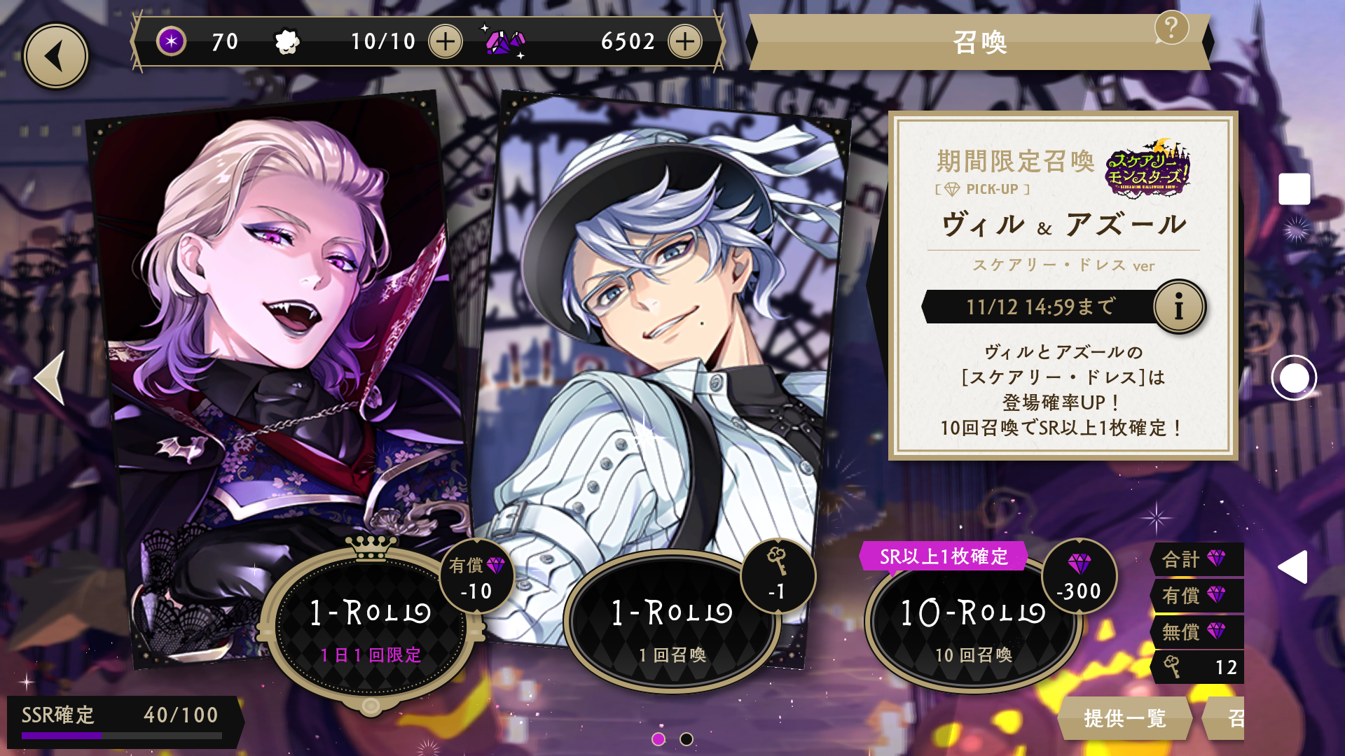 今回は、絶賛開催中の期間限定イベント「スケアリー・モンスターズ!」の、二回目のピックアップになるSSRヴィル様とSRアズールの召喚結果を書きたいと思いまーす!w