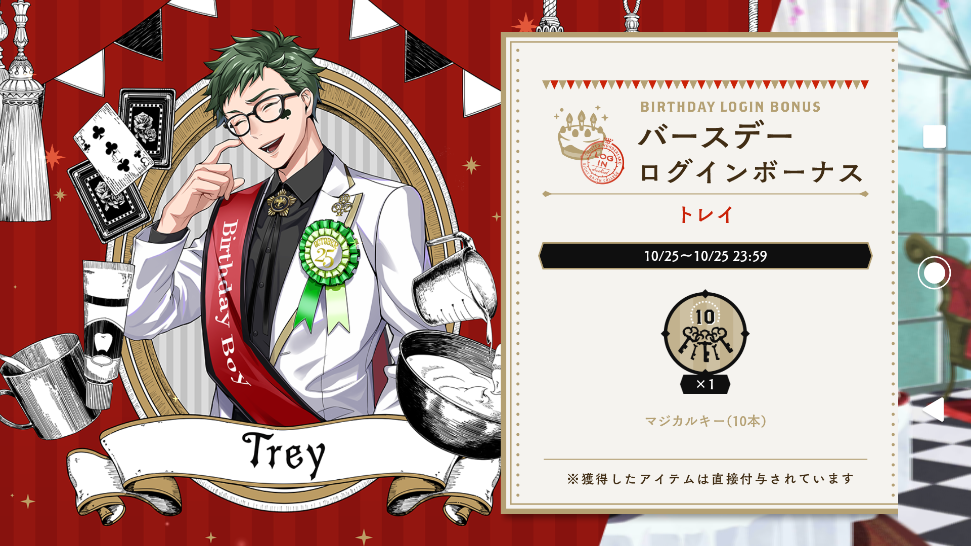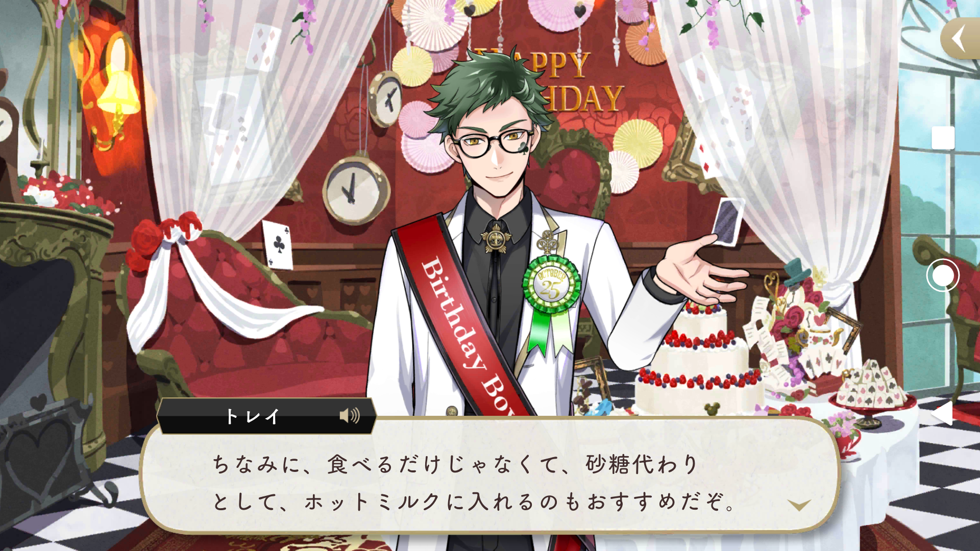 「ツイステ」では、お誕生日当日になると、お誕生日専用フルボイスが実装&バースデー限定の専用背景があったりして