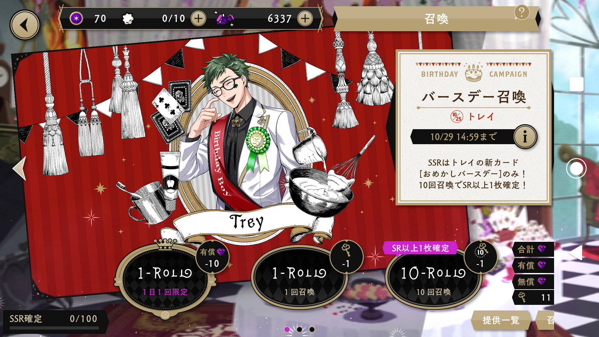 その推しの一人である、トレイ先輩のバースデーカードが排出される、バースデー召喚に挑んだ結果を、今回は書こうと思います!w