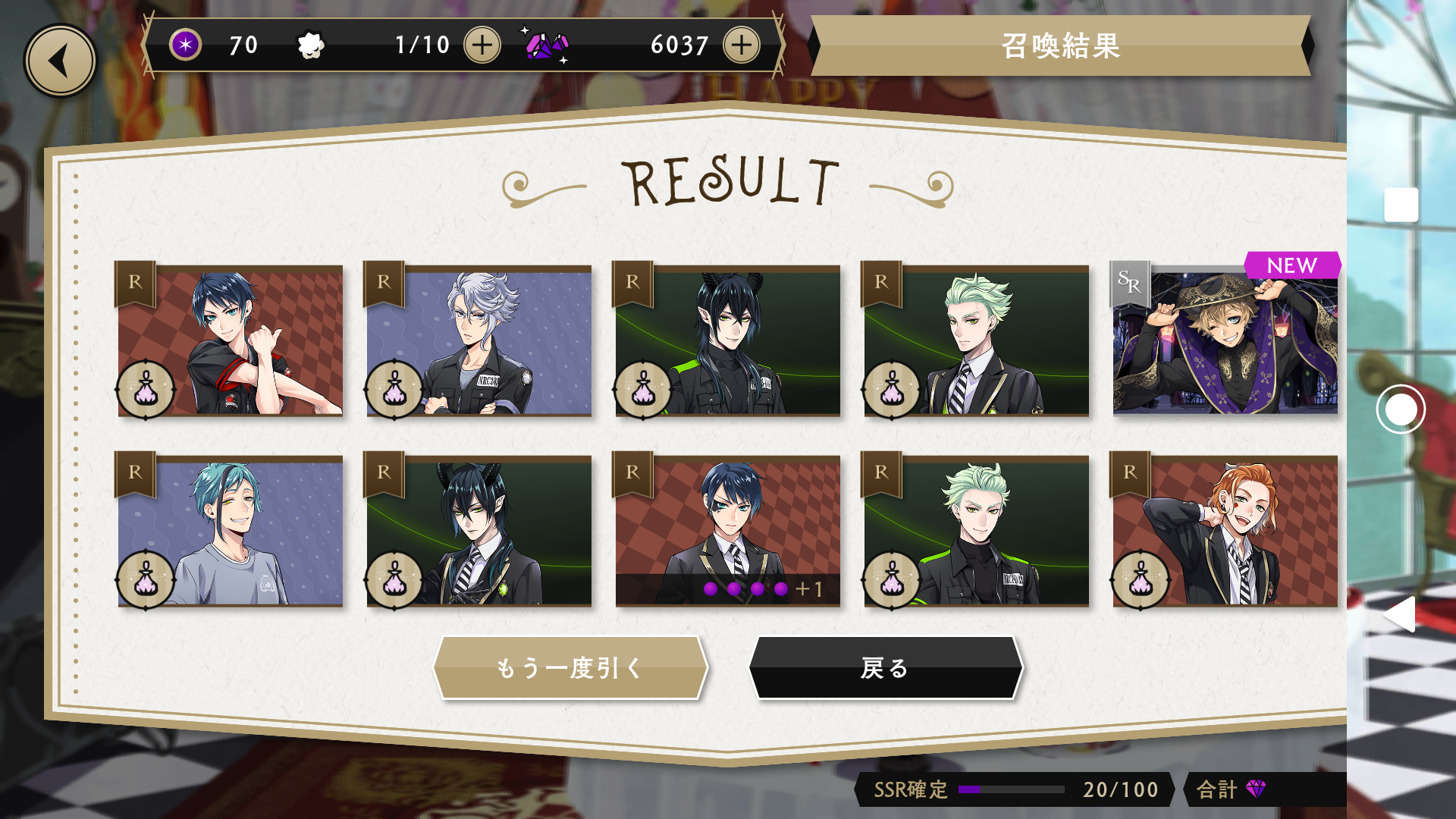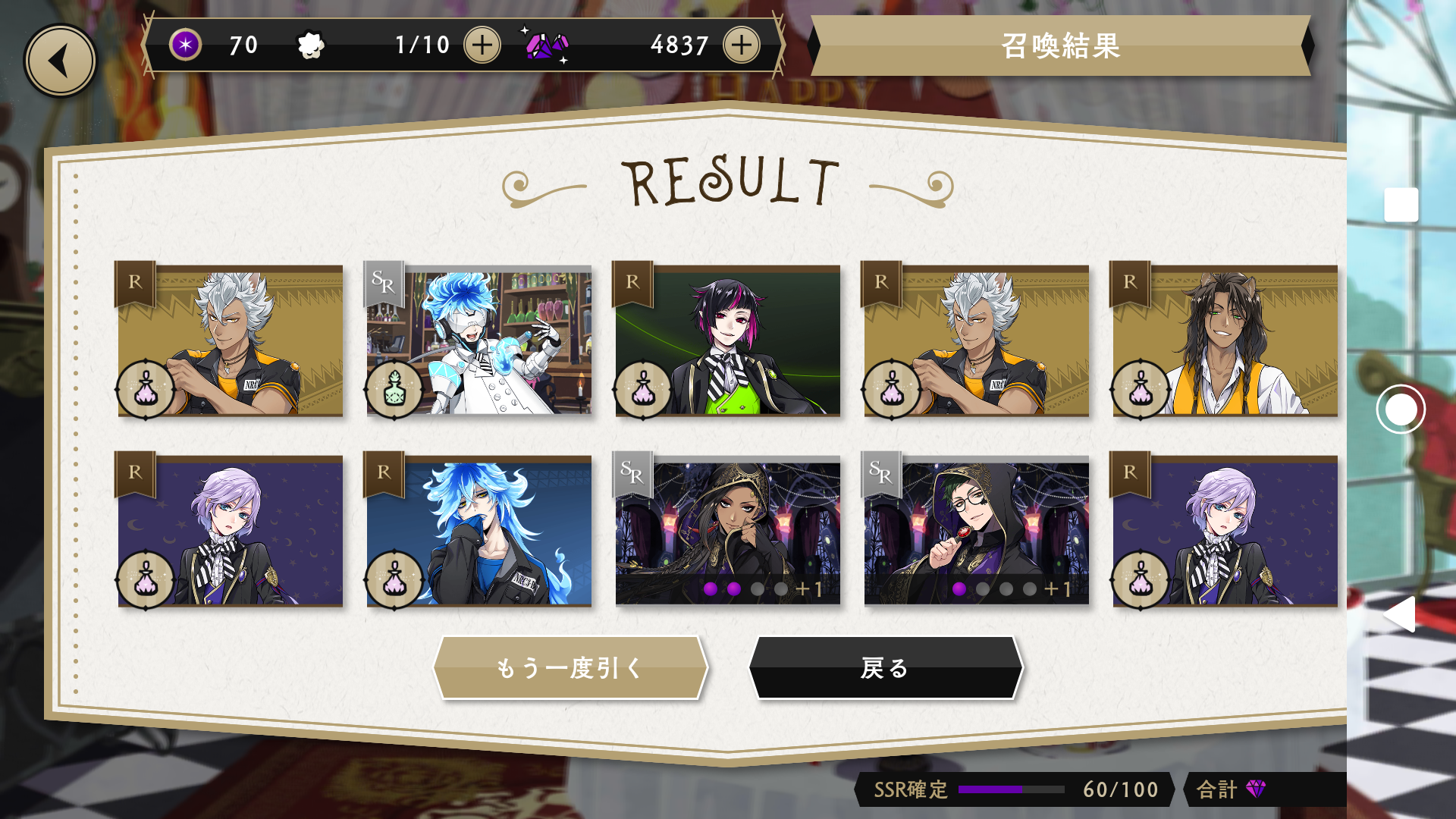 って、ことで、10連を10回すれば、必ずバースデーカードが手に入るので、安心をしてガチャをスタートです!(すでに、ガチャで脳がおかしくなっているw