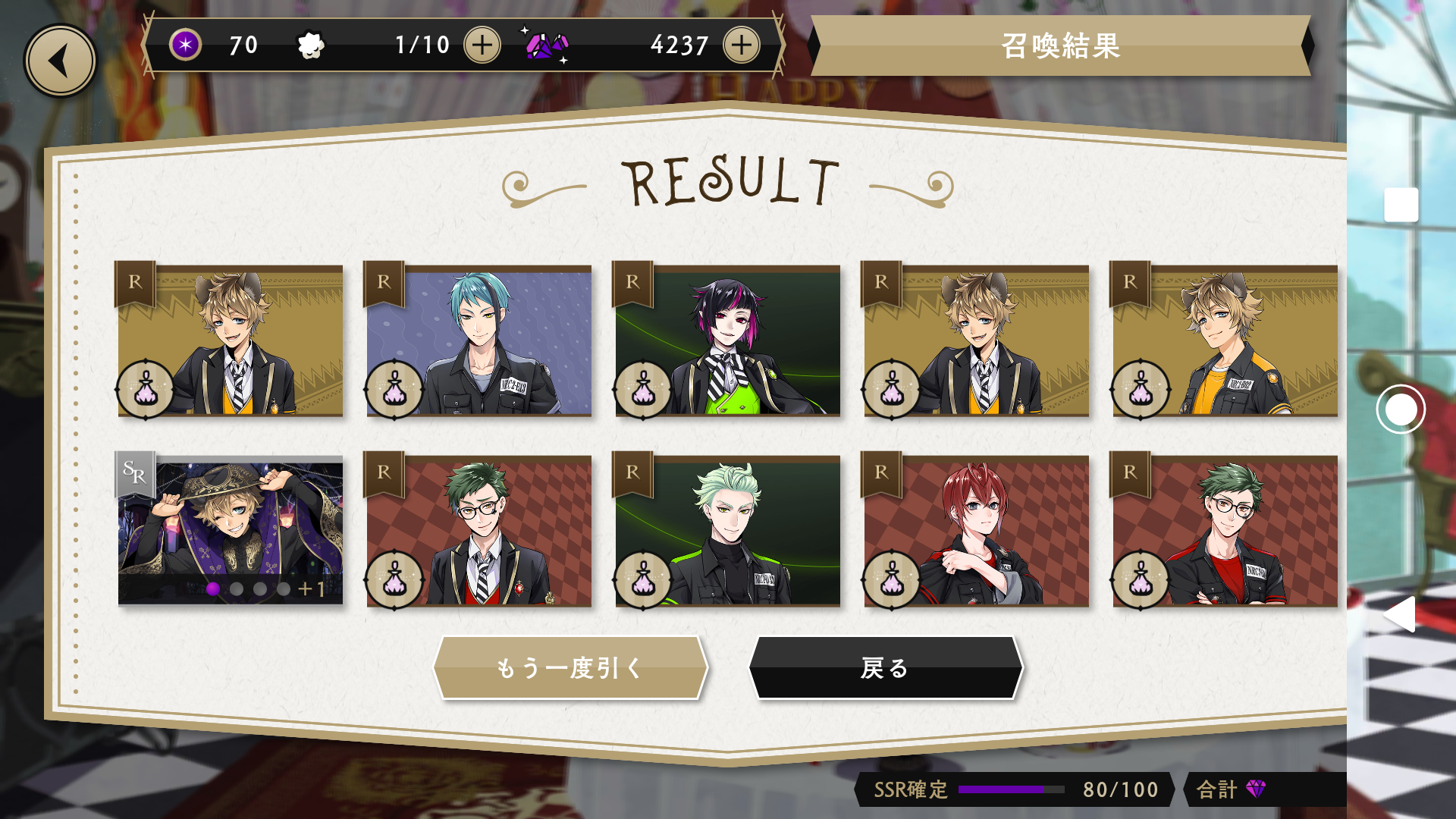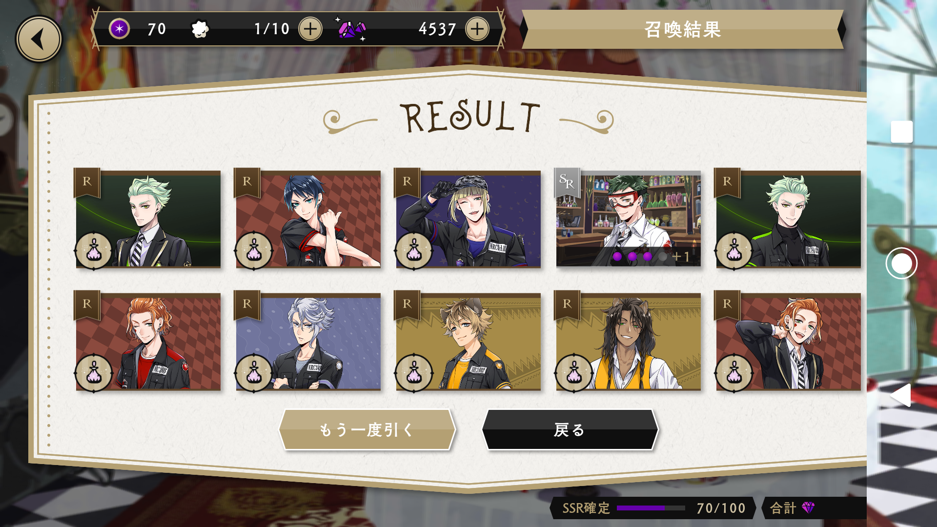 バースデーカードが、排出される期間限定ガチャは、10連を10回すれば、必ずバースデーカードが手に入る仕様