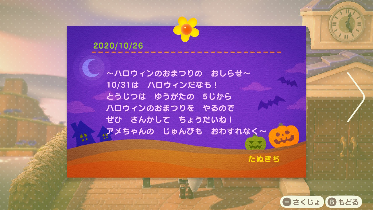本日、島の掲示板にハロウィンの主・パンプキングから予告状がっ!?※予告状ではないw