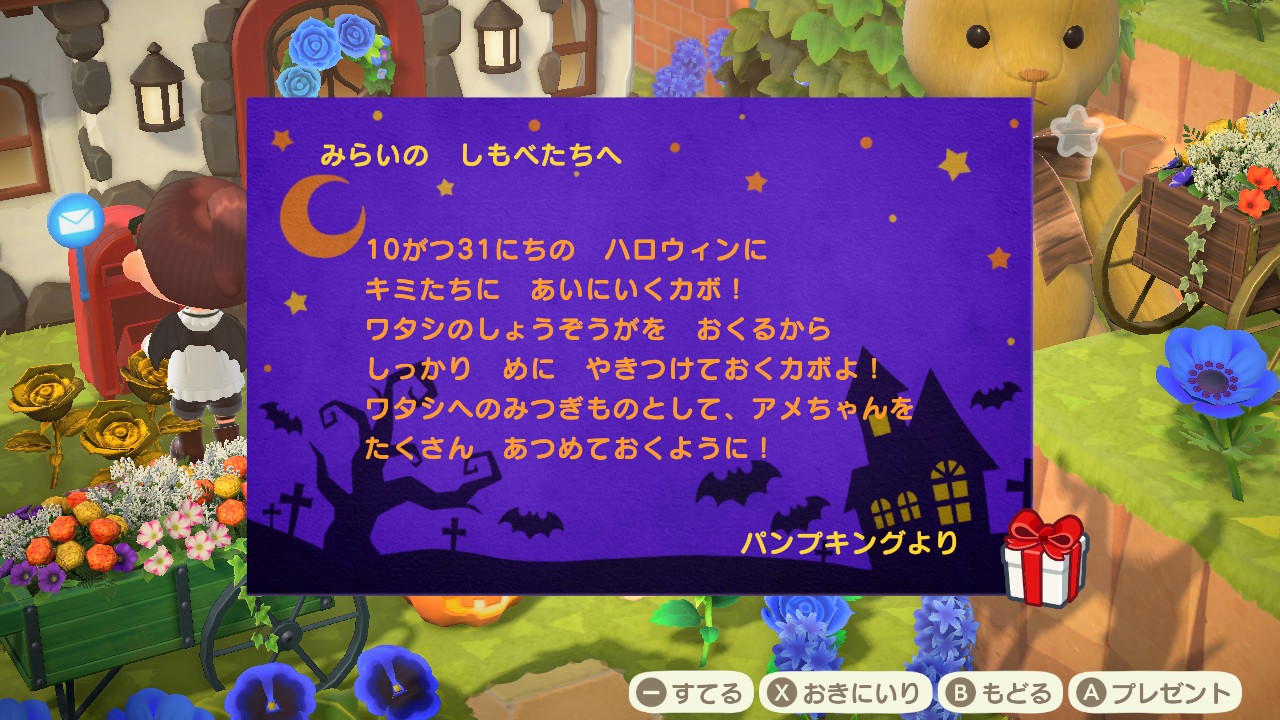 今月は、「あつ森」の方でも、月末にハロウィンが開催予定(嬉)