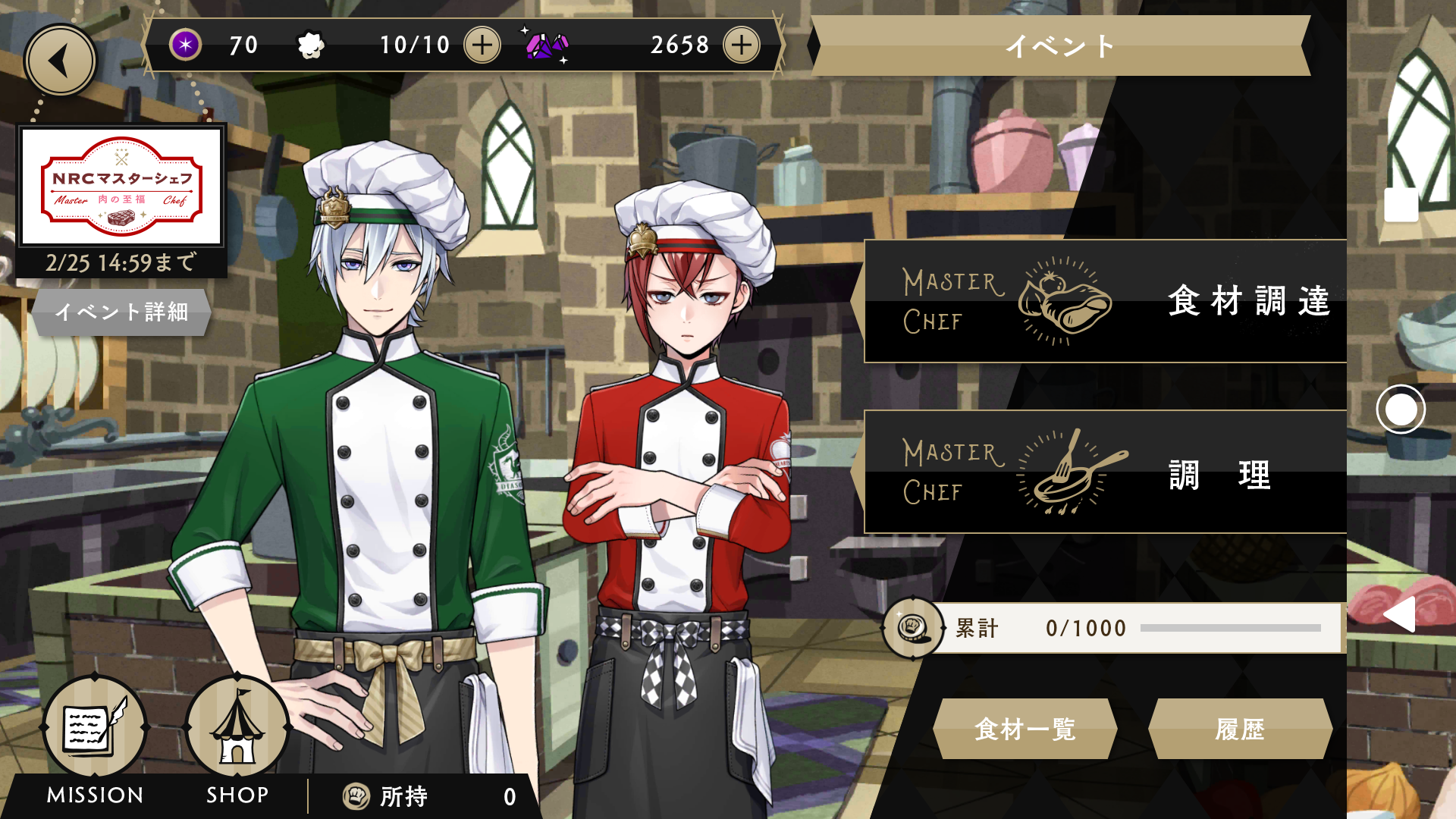 昨日のメンテナンス明けからスタートした、期間限定イベント「NRCマスターシェフ~肉の至福~」