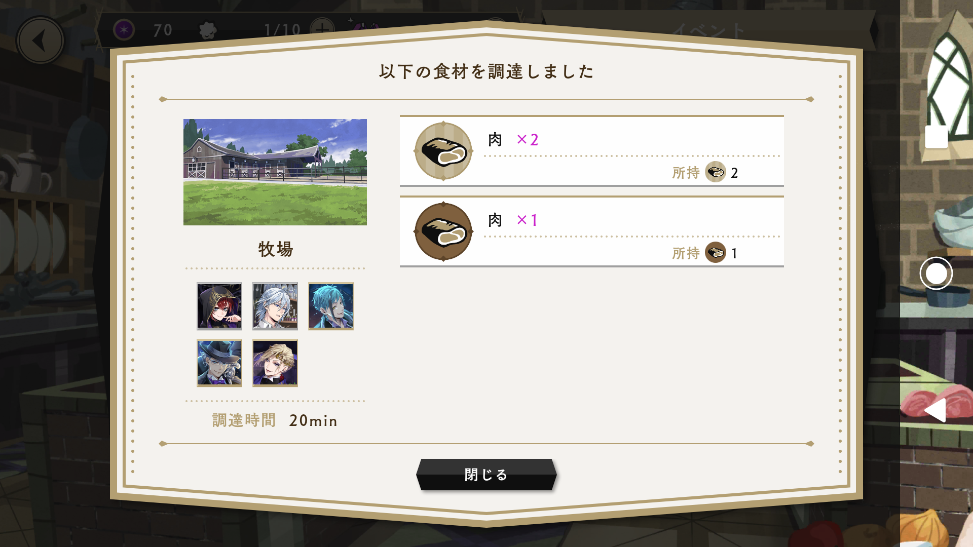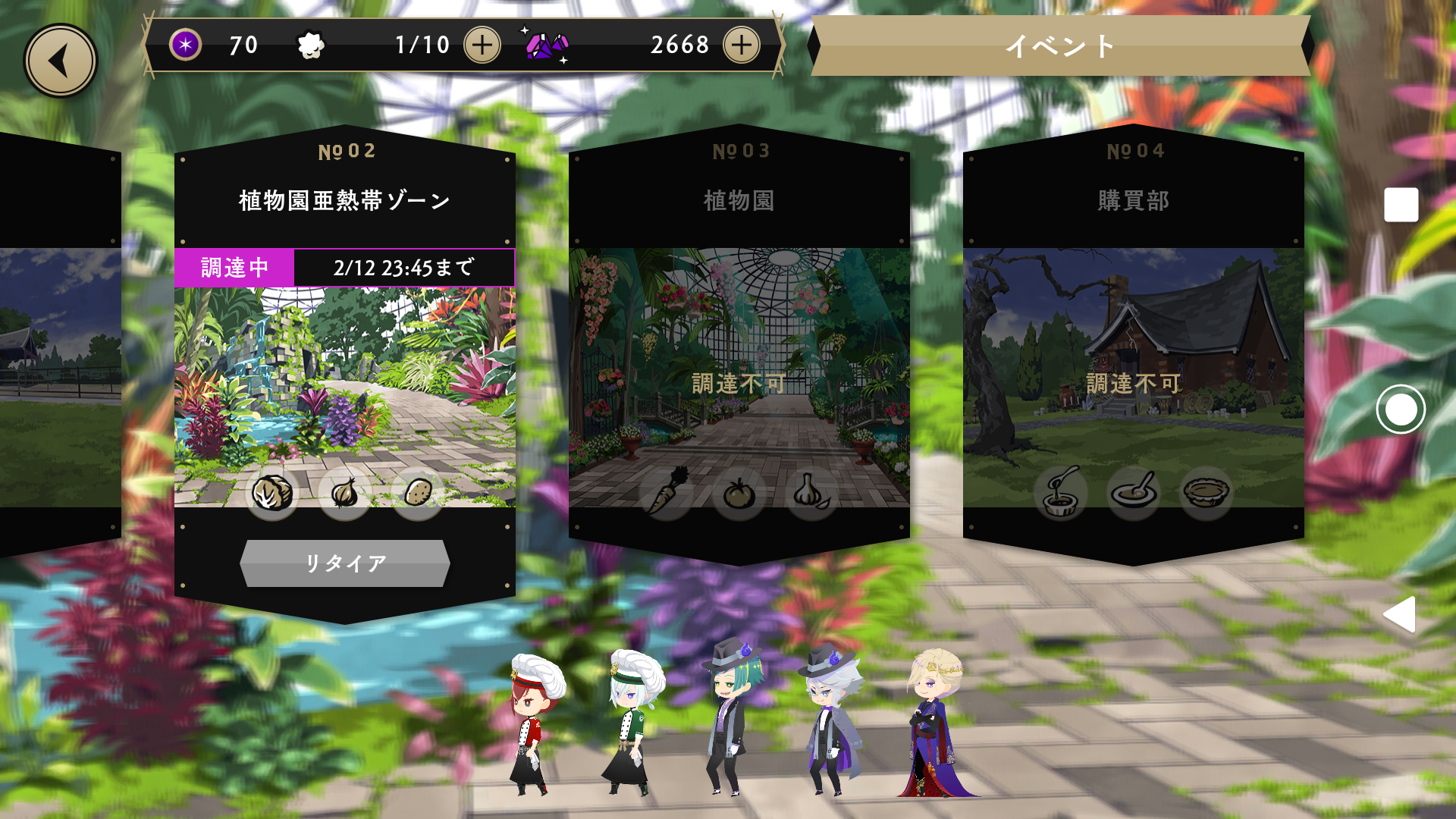 そして、今回のイベントは、手持ちカードからパーティーを編成して、調理に必須な素材集めが必須!