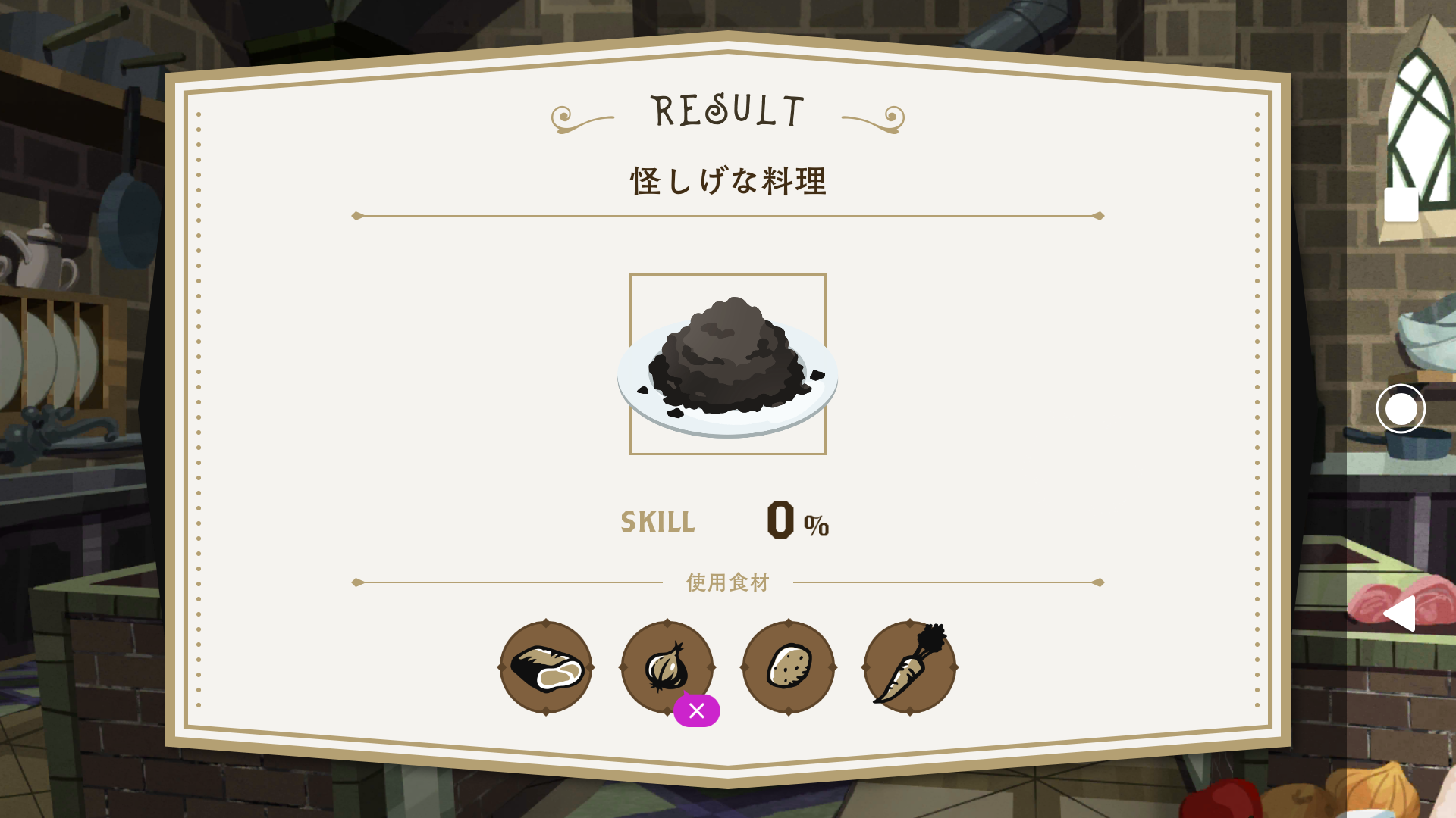 せっかく集めた素材を使った料理も、今は黒焦げ状態ですしw