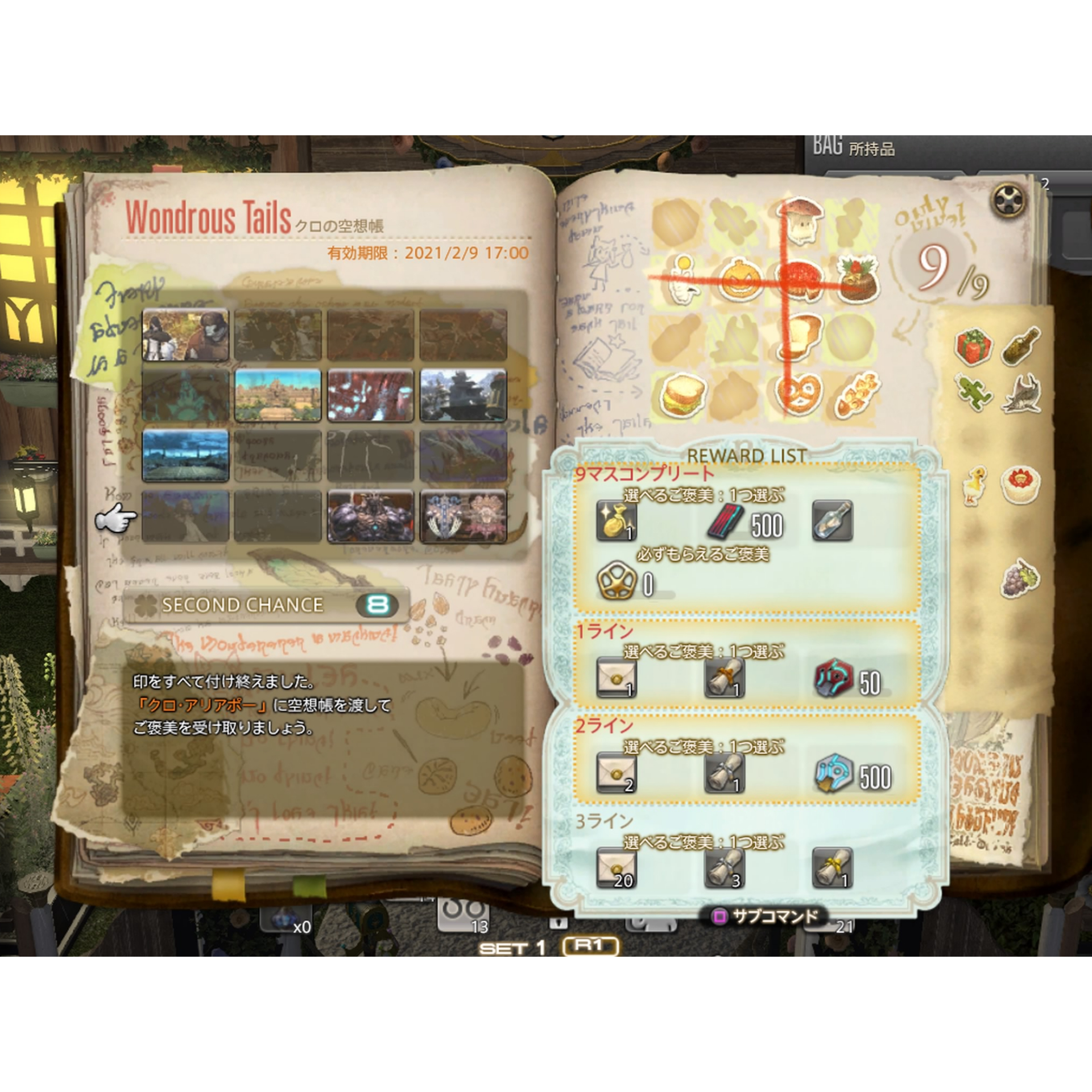 でも今夜は、ログイン後にクロちゃんに2ライン揃った空想帳を渡しに行かなくちゃ(嬉)