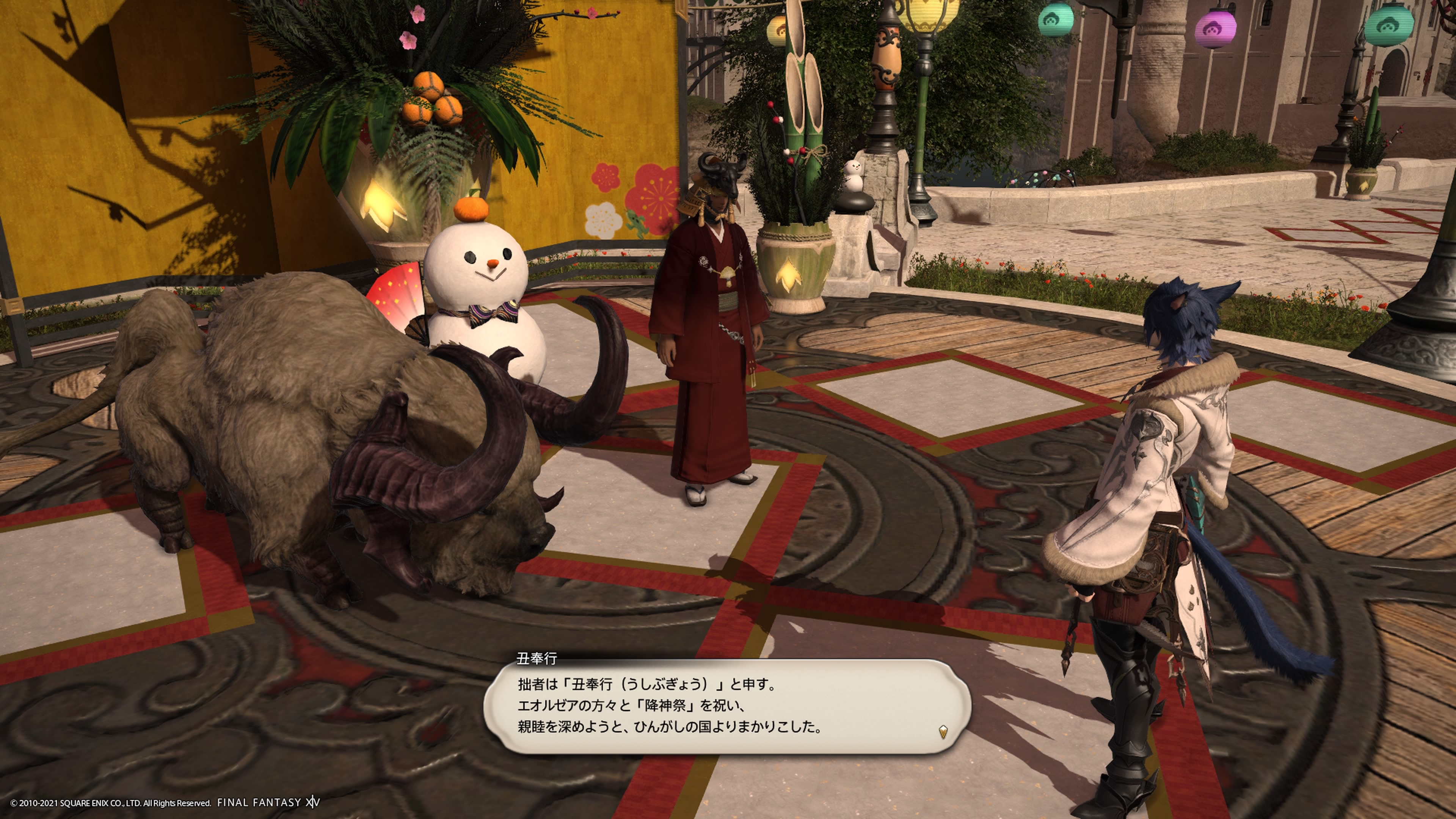 シーズナルイベント「降神祭」は、エオルゼアのお正月をお祝いする、毎年恒例の期間限定イベントですねー。