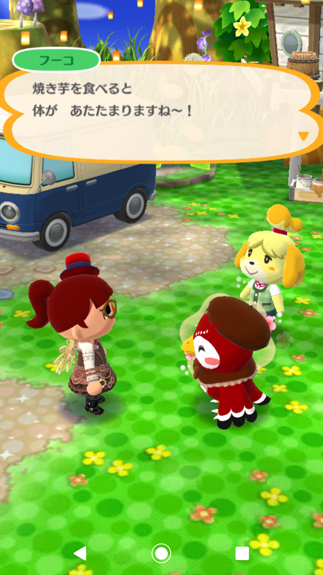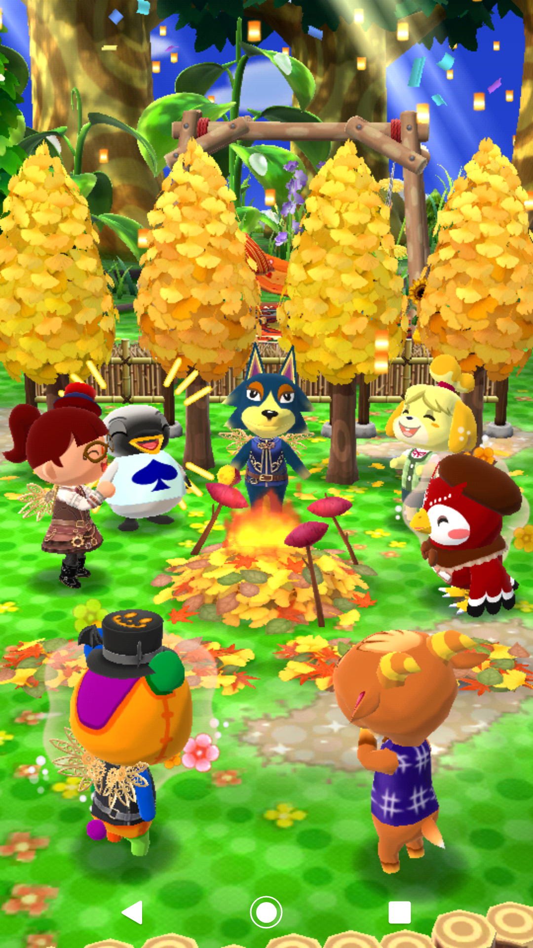 みんなで囲んでいる、焼き芋を焼いている落葉が、9月の期間限定イベント完走の報酬だったりします※アイテムの正式名称を忘れた(汗)