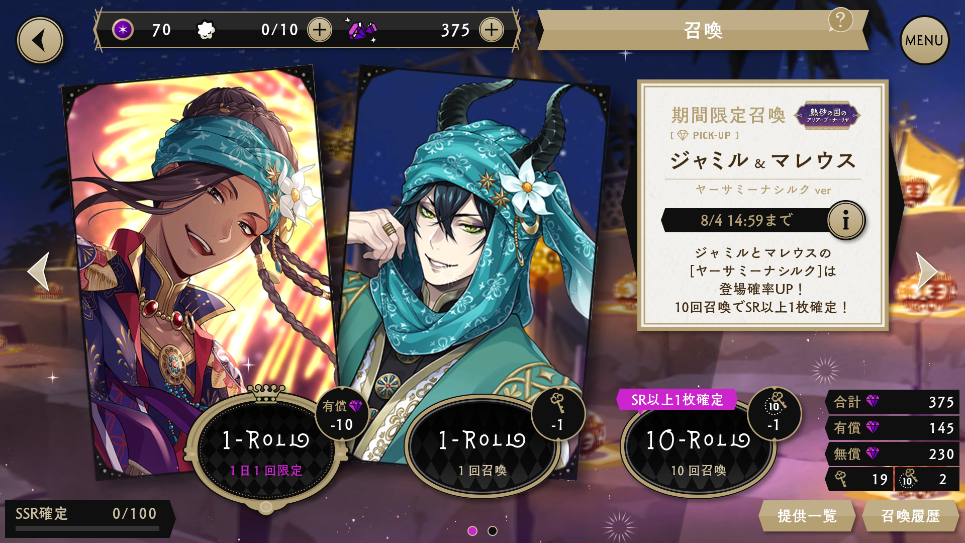 今回の期間限定召喚で、新規に実施されたのはSSRジャミルとSRマレウス