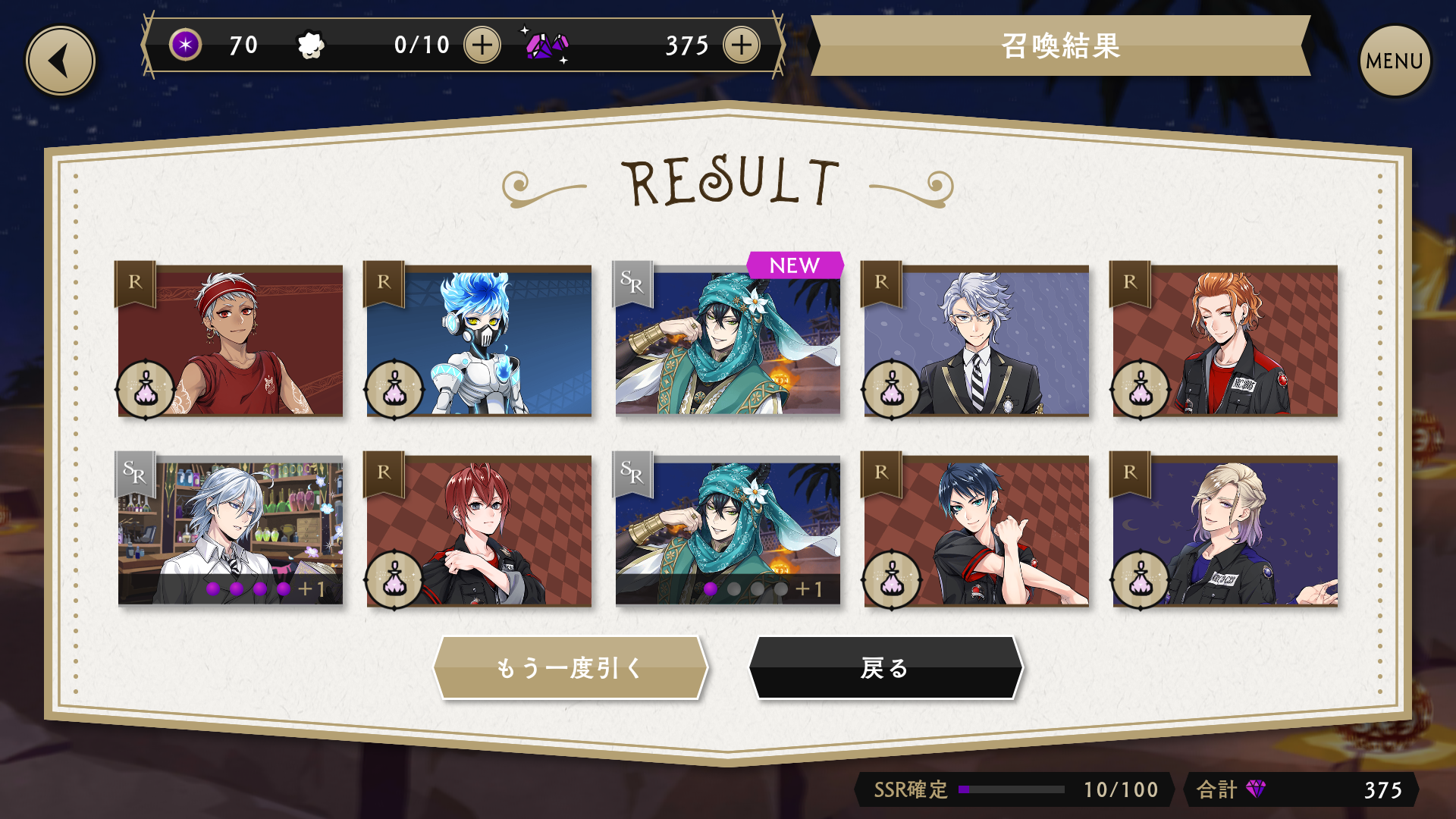 「一回だけ10連をして、SRマレウスが召喚できることに期待」って、ことで、今回の期間限定召喚は一回だけ10連にチャレンジしました