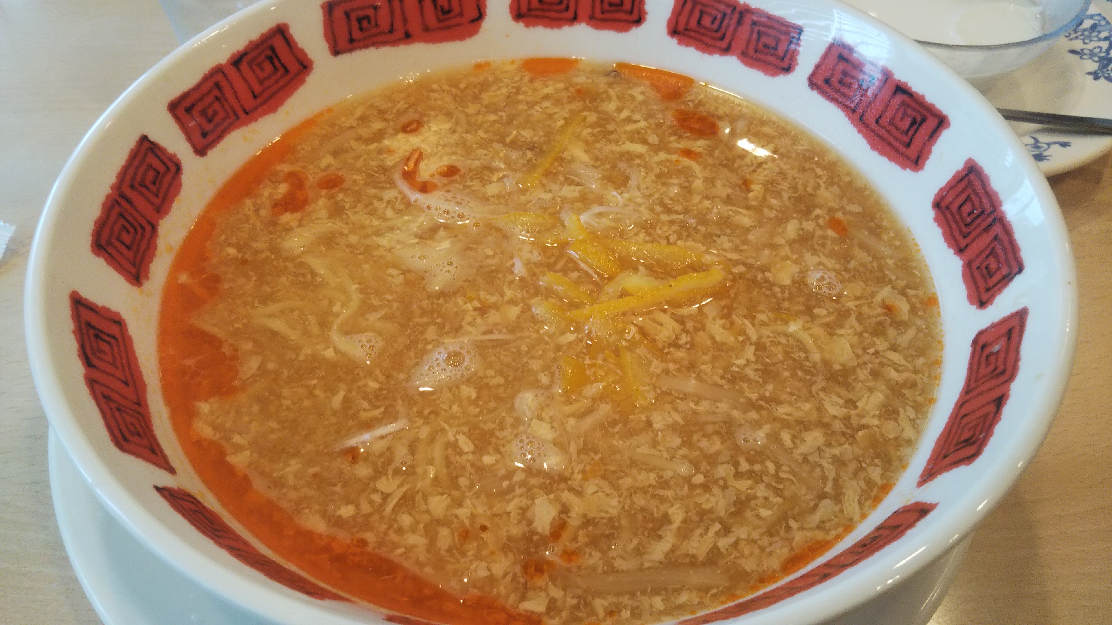 必死に、食べたかったメニューを思い出そうとしても、まったく思い出せなかったので、今回は期間限定メニューから、短冊切りのレモンがトッピングされた酸辣湯面にしました(これはコレで美味しかったです!w