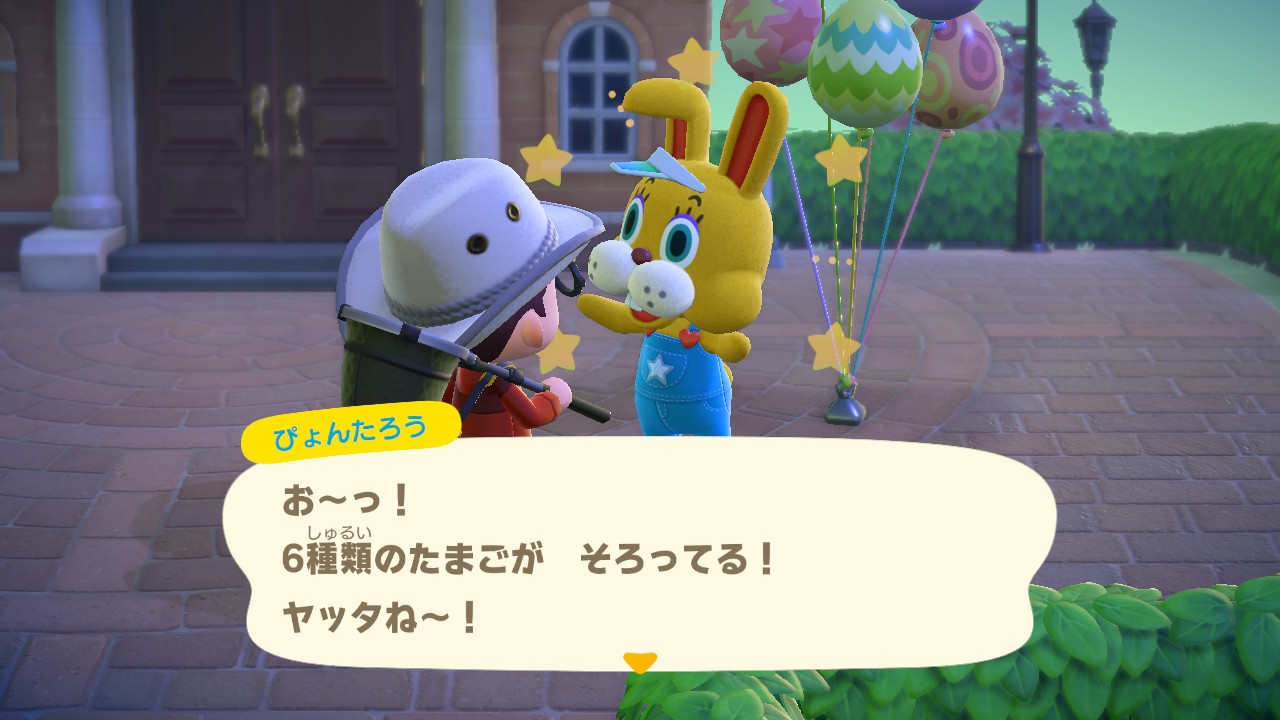 数日前に、シャイニング島にやって来たぴょんたろうから「たまごを集めておくように」と、言われていたので、島内にある六種類のイースターのたまごを集めるだけ集めて、本日のイースター当日に待機していました