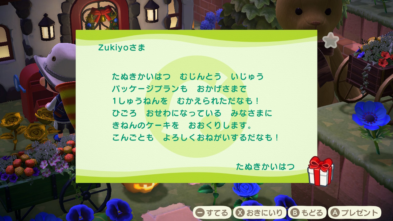 どうやら、去年の3月18日に「あつまれ どうぶつの森」が発売されて、本日で一周年なんですね!!